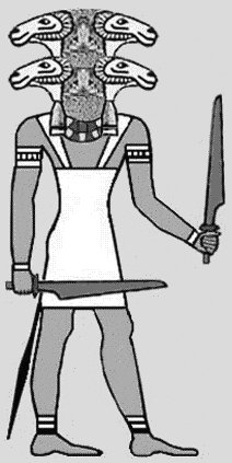 At Mendes (Tell-el-Ruba) he was kept as a sacred ram, worshipped as the incarnation of Ra and Osiris, where they have unearthed a cemetery with sarcophagi for sacred rams. Originally he was a local god Ba Neb Tetet and was given the solar disc and uraeus (coiled cobra). When dwelling in Setit, the island of Seheil at the first cataract, which links him to Khnum (the southern ram-god), a time whem Horus and Set were fighting it was the ram-god Ba Neb Tetet who mediated them to the opinion of the goddess Neith. Over time he has been perverted to occult status and called the "goat of Mendes," a diabolical spirit in Satanic rituals.