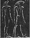 Another source shows Neheh (Heh) as a squatting man wearing a curved reed on his head and carrying symbols of life, like the crux ansata, like the one that Atum (Tum, Tem) carries.