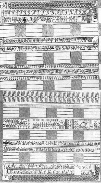 ... we find that we have to do chiefly with the opposite part of the sky including the signs of the Lion, the Scales, and Sagittarius, and below them other stars are represented as mythological personages in boats (i.e. the other 18 Decans)."